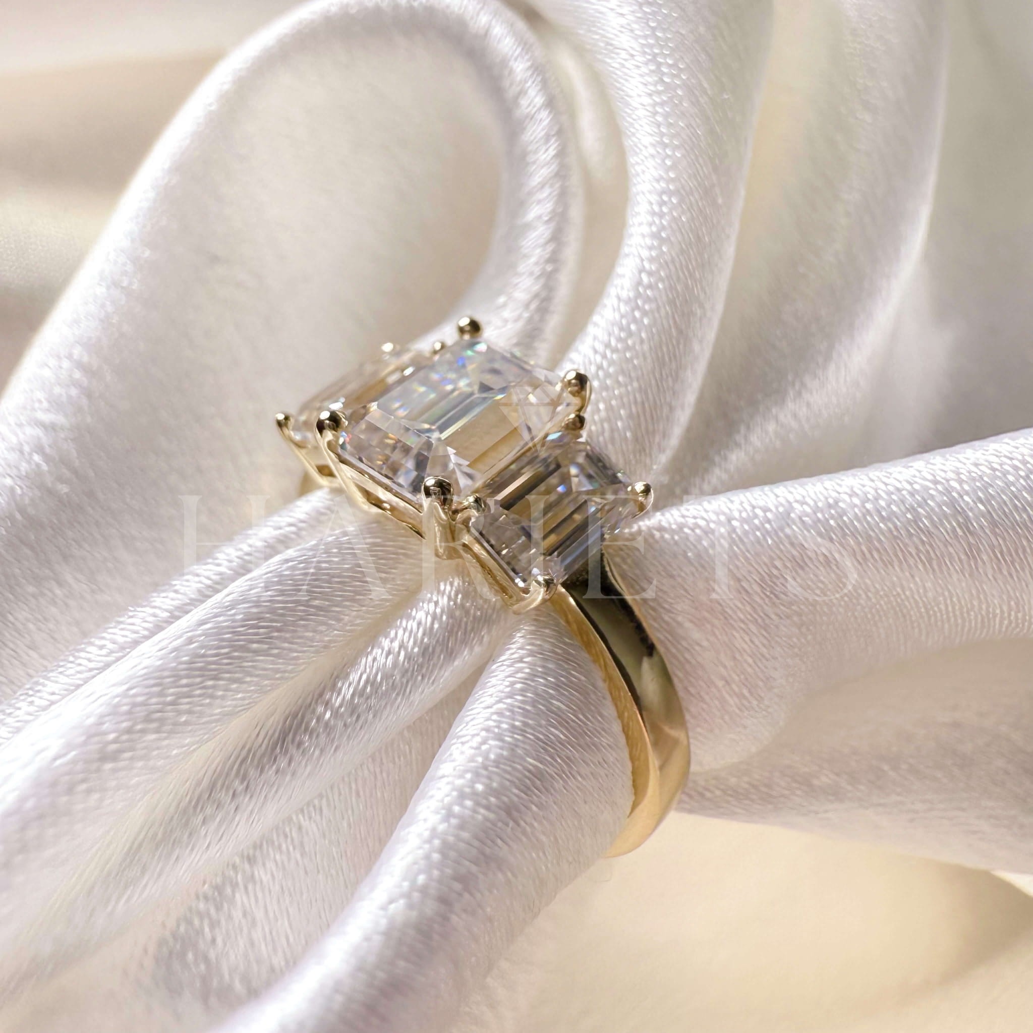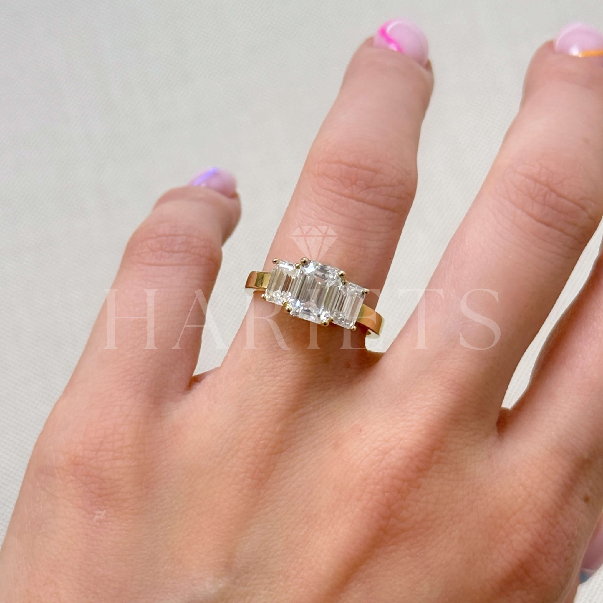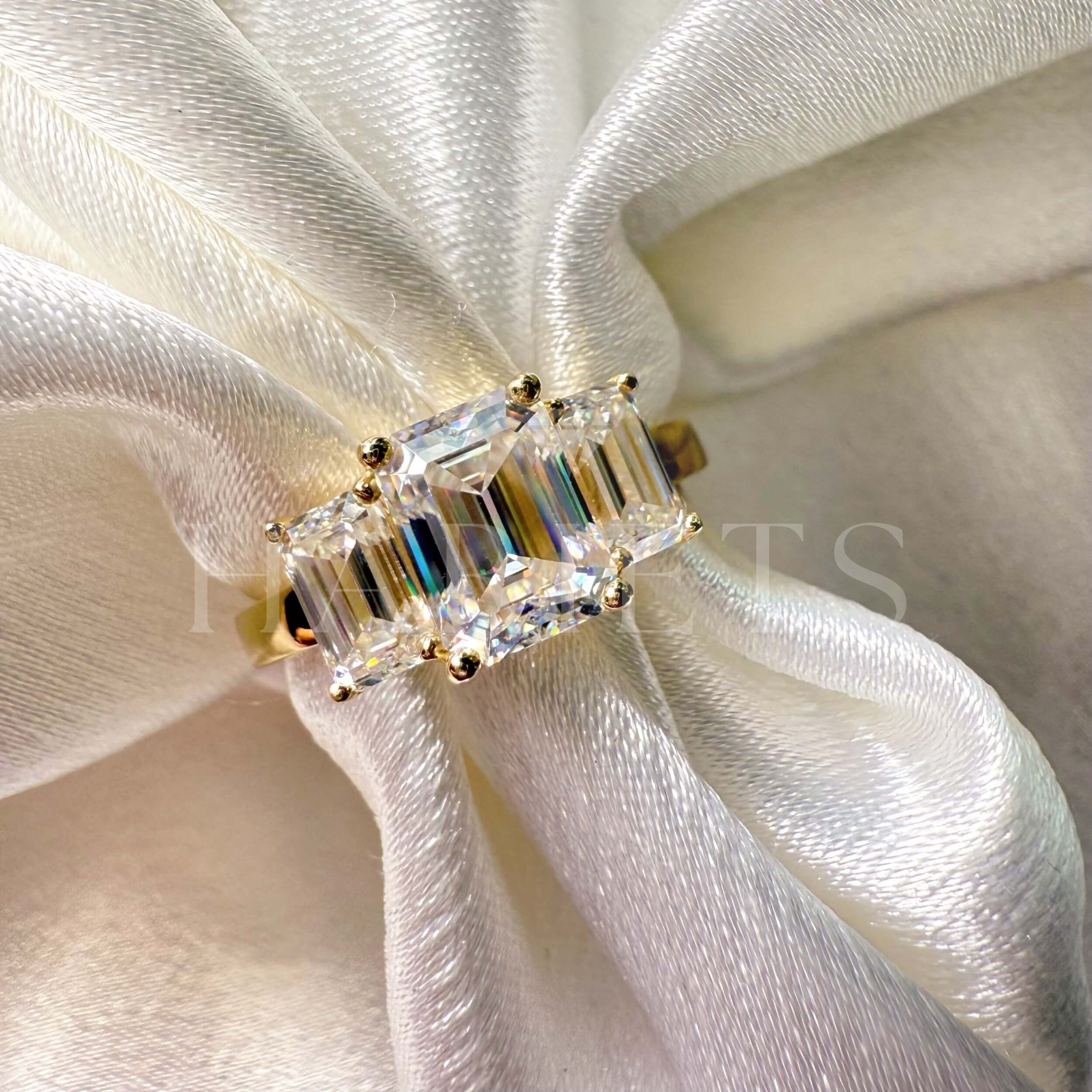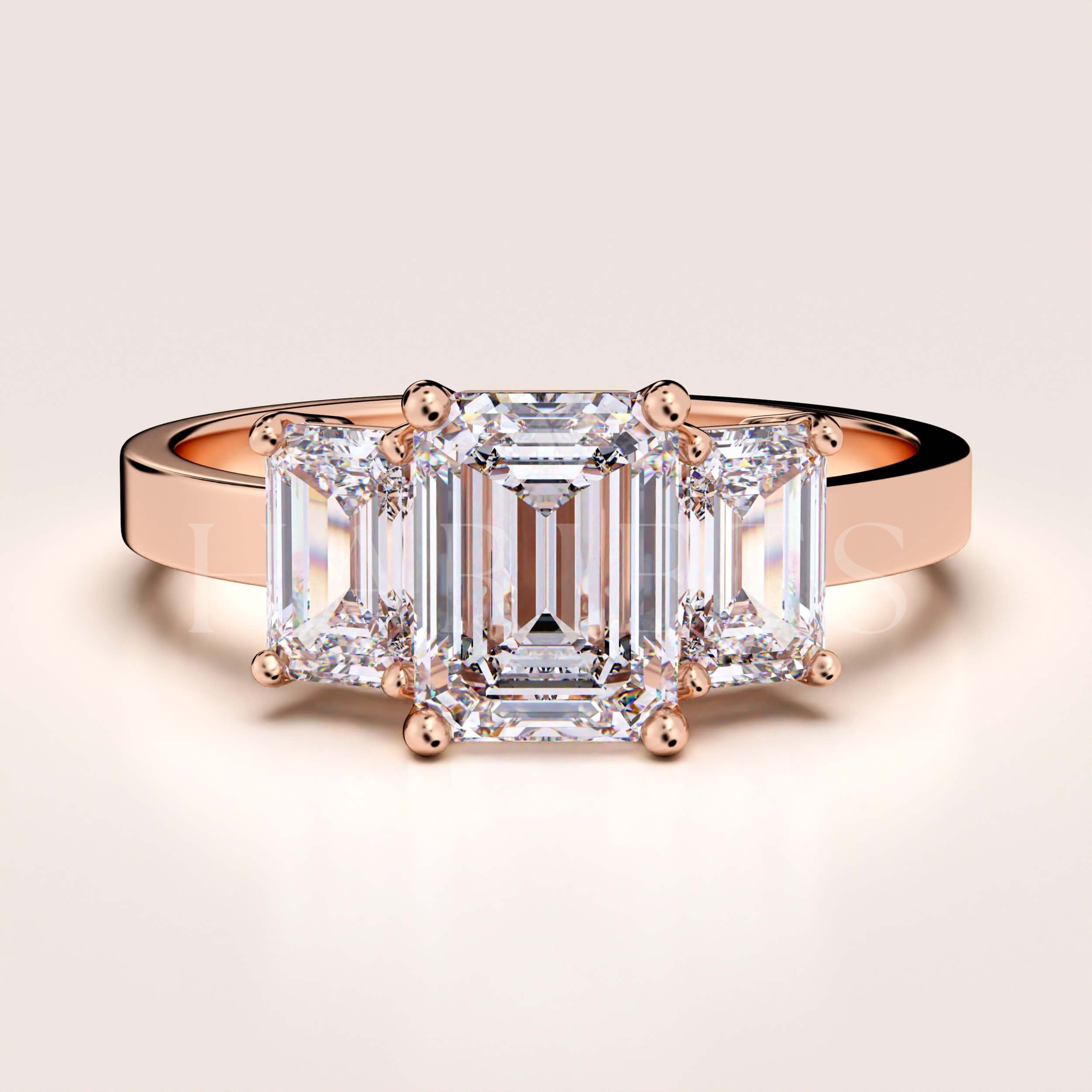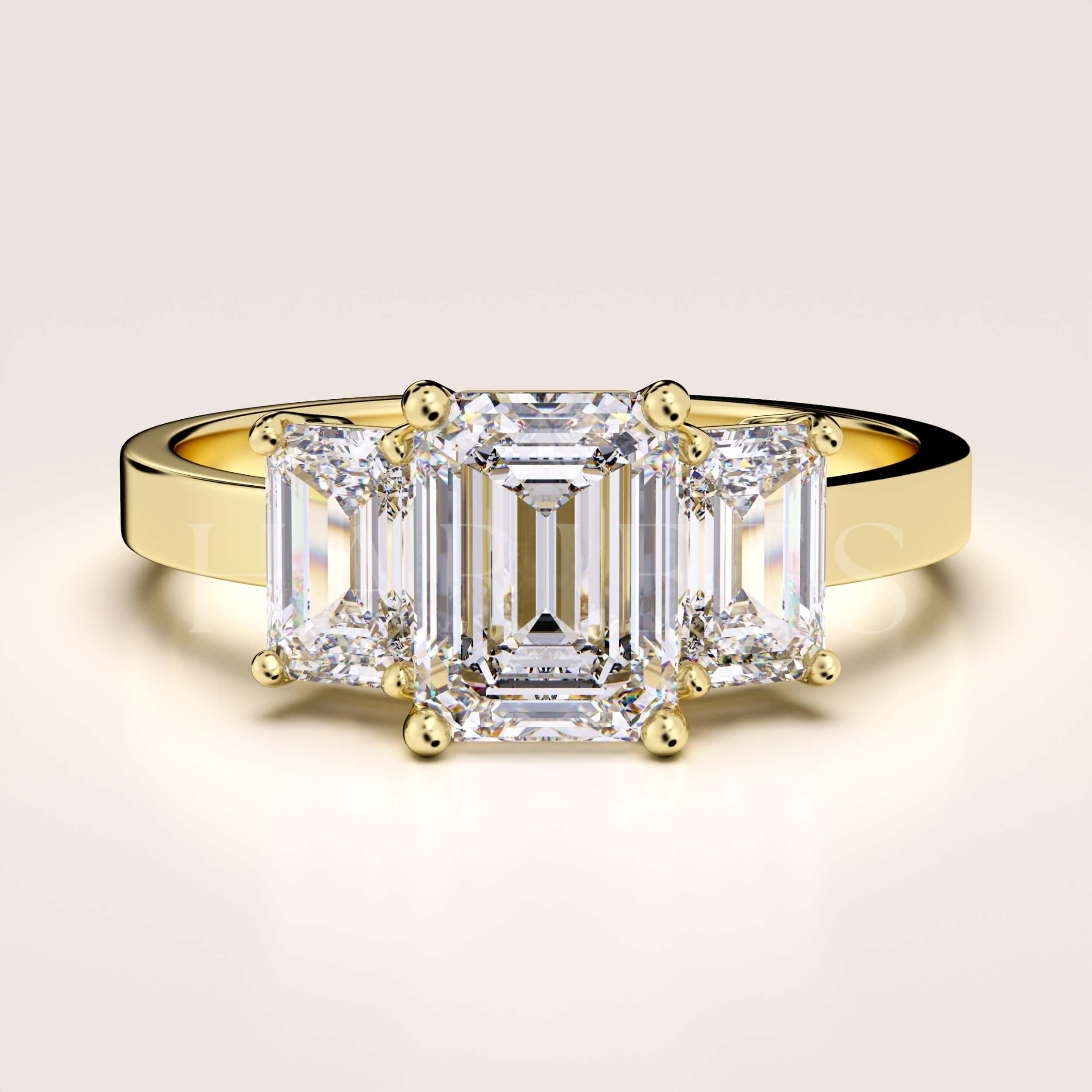 Bague de fiançailles Trinity avec diamants de laboratoire 3 ct taille émeraude – Envy or 585