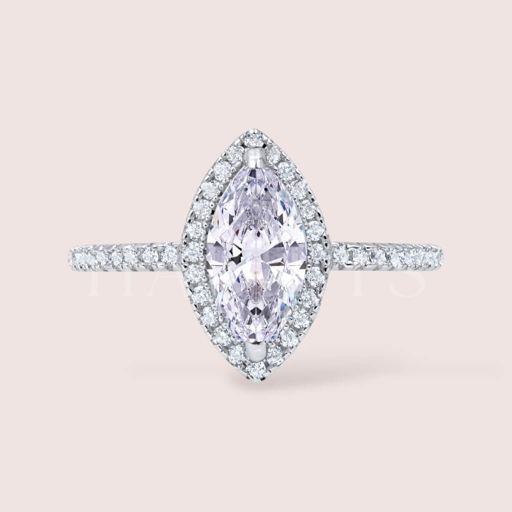 Bague halo avec moissanite marquise env. Ivory 1.3 carat - argent 925