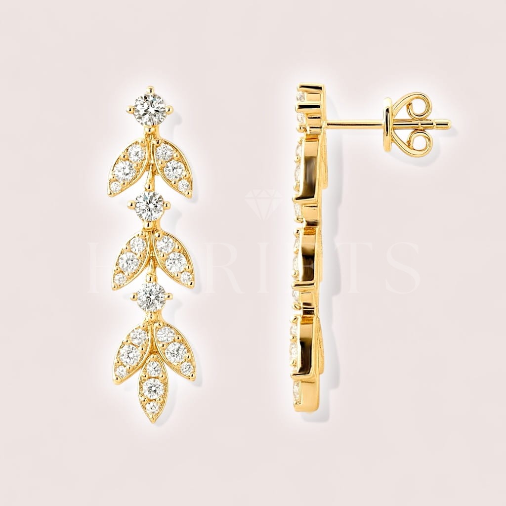 Boucles d’oreilles pendantes avec moissanites – Leaf argent 925