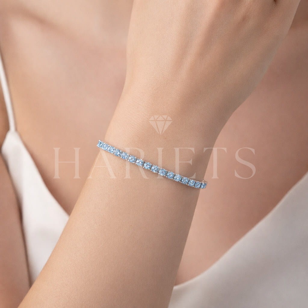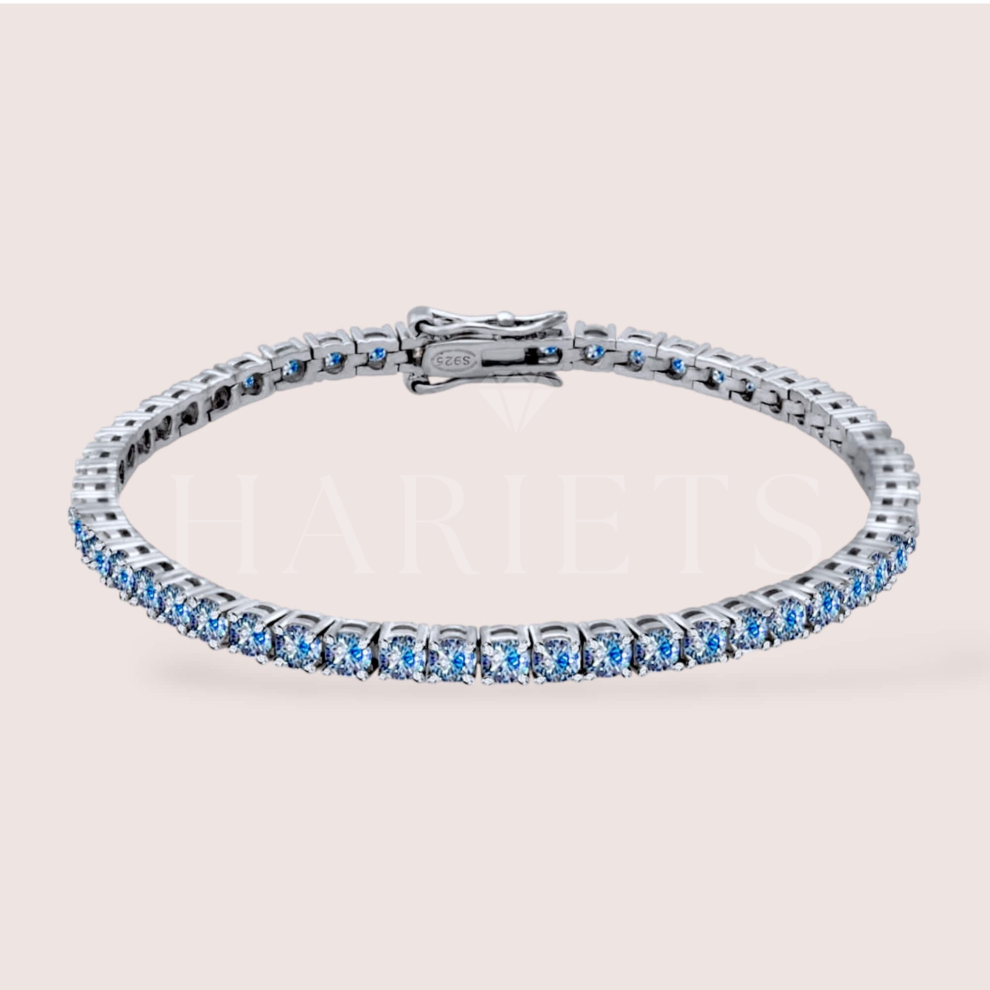 Bracelet tennis avec moissanites bleues 3mm - argent 925